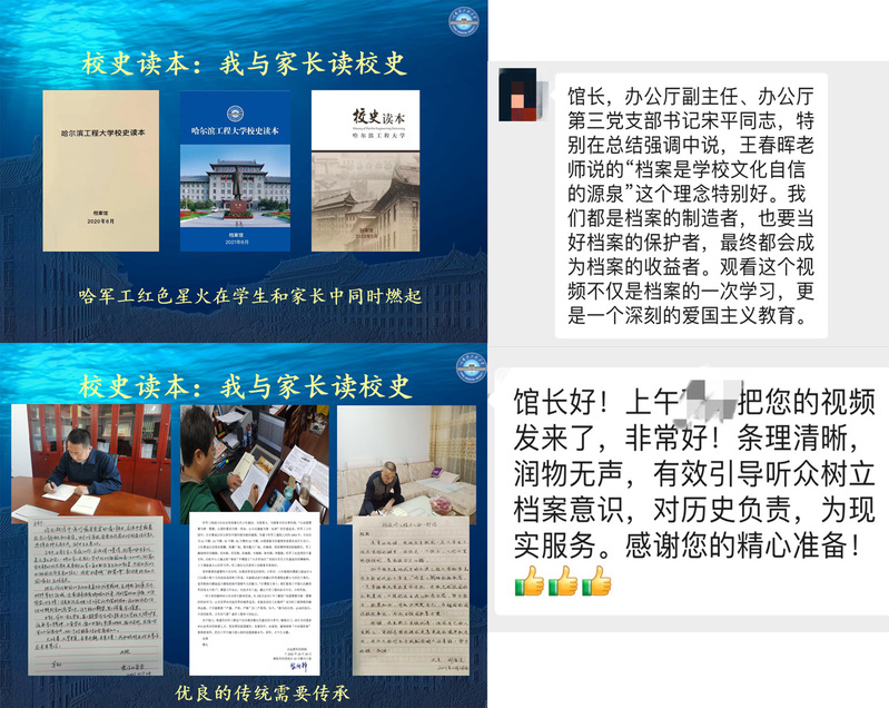 档案馆党支部书记王春晖以“传承精神 积淀文化 服务育人——哈尔滨工程大学档案馆对哈军工档案的编研”为主题,从“档案无声、工作有力,档案工作内涵外延不断扩大”“记忆和见证,档案在文化传承创新方面的作用”“档案是学校文化自信的源泉”“将哈军工的文化优势转化为学校的发展优势”四个方面做了领学。领学中她例举了两个校史编研的案例。一是组织编写的以历史档案为线索的《校史读本》以及结合校史读本开展的“我与家长读校史”活动。优良的传统是需要传承的。哈军工有陈毅为尽父辈教诲之责,给儿子陈丹淮考入哈军工写的“示儿诗”;有罗荣桓给儿子罗东进写的家书,对孩子提出严格而具体的要求。如今有哈工程的家长给孩子写的家书,寄语现在和未来。二是学校文化建设经费支持的,党委常委、党委宣传部部长吕冬诗同志作为总策划的《讲述:哈军工革命文物背后的故事》文化项目。项目由档案馆全权打造,但讲述人则选取了在学校不同岗位工作的老师,力图通过项目牵动,经过几年的建设,打造一个校史故事讲述人团队,让工程大学的老师和学生人人了解哈军工的红色故事,人人都是哈军工文化的传承者和宣传员。领学得到部办公厅第三党支部同志与会领导与同志的高度认可,认为领学有效引导了与会同志梳理档案意识,强化对历史负责、为现实服务的使命感。